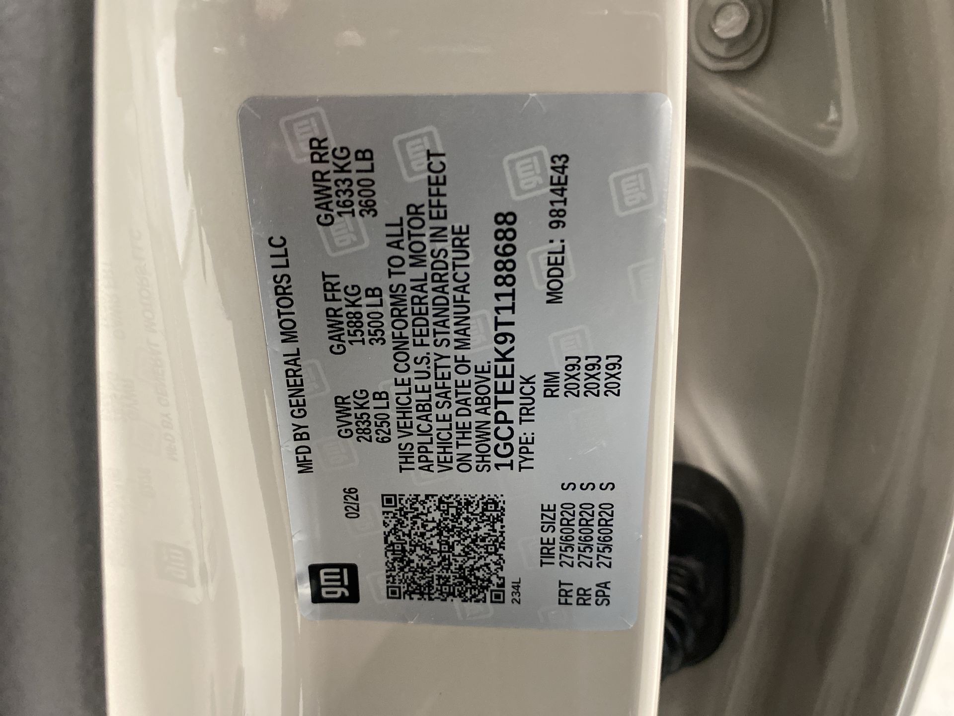 - Tire pressure display of current PSI available in the Driver Information Center