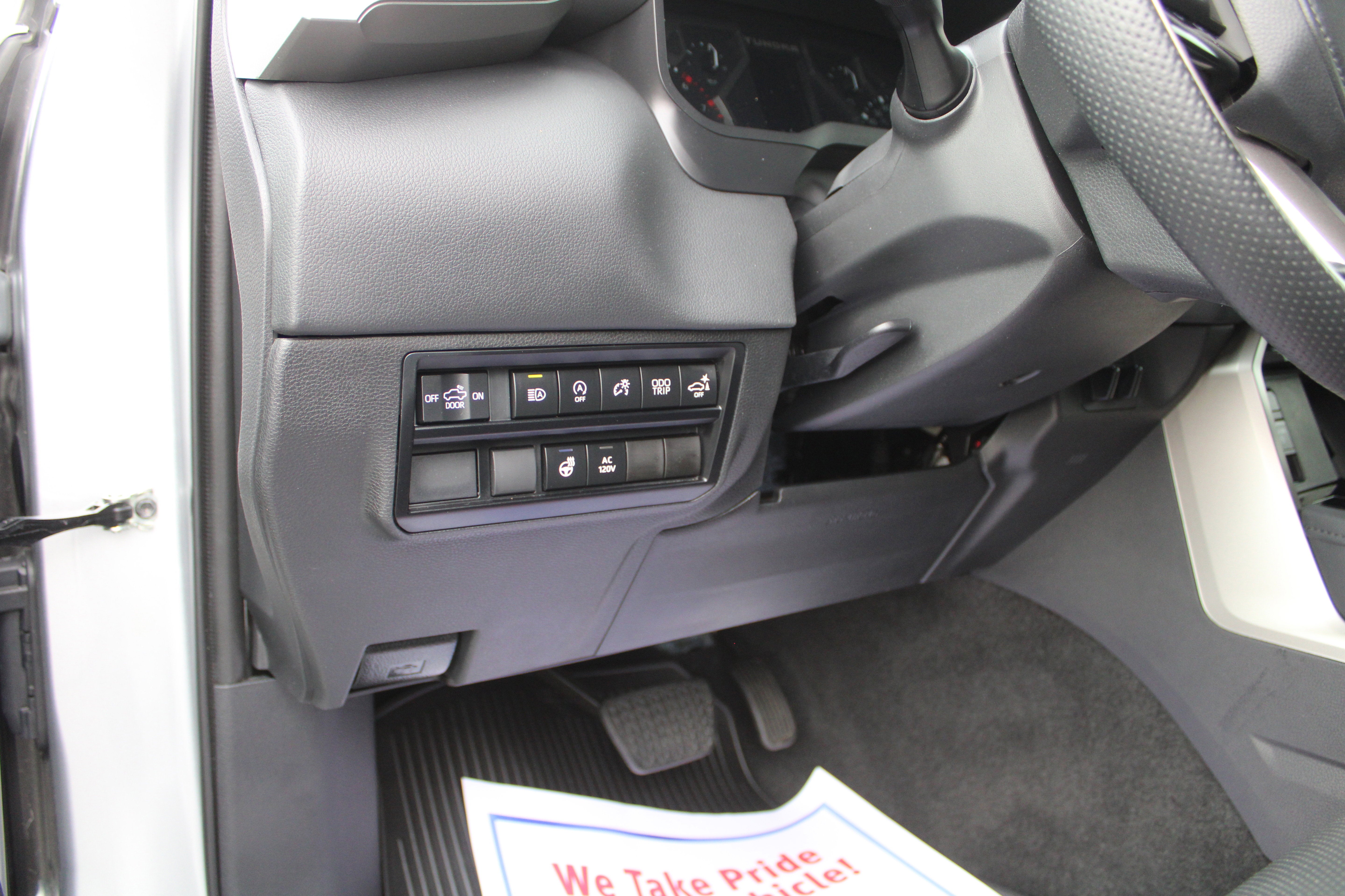 - Driver foot rest - Put your foot up. Driver's foot rest - or dead pedal - is located on the left side of the footwell and provides the driver a solid place to brace themselves from movement as well as aiding in comfort on long trips. Sit back and relax with a driver foot rest.